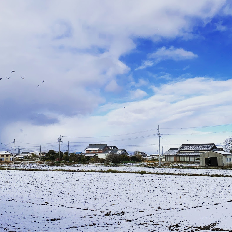 この前愛西市にも雪が降りました。