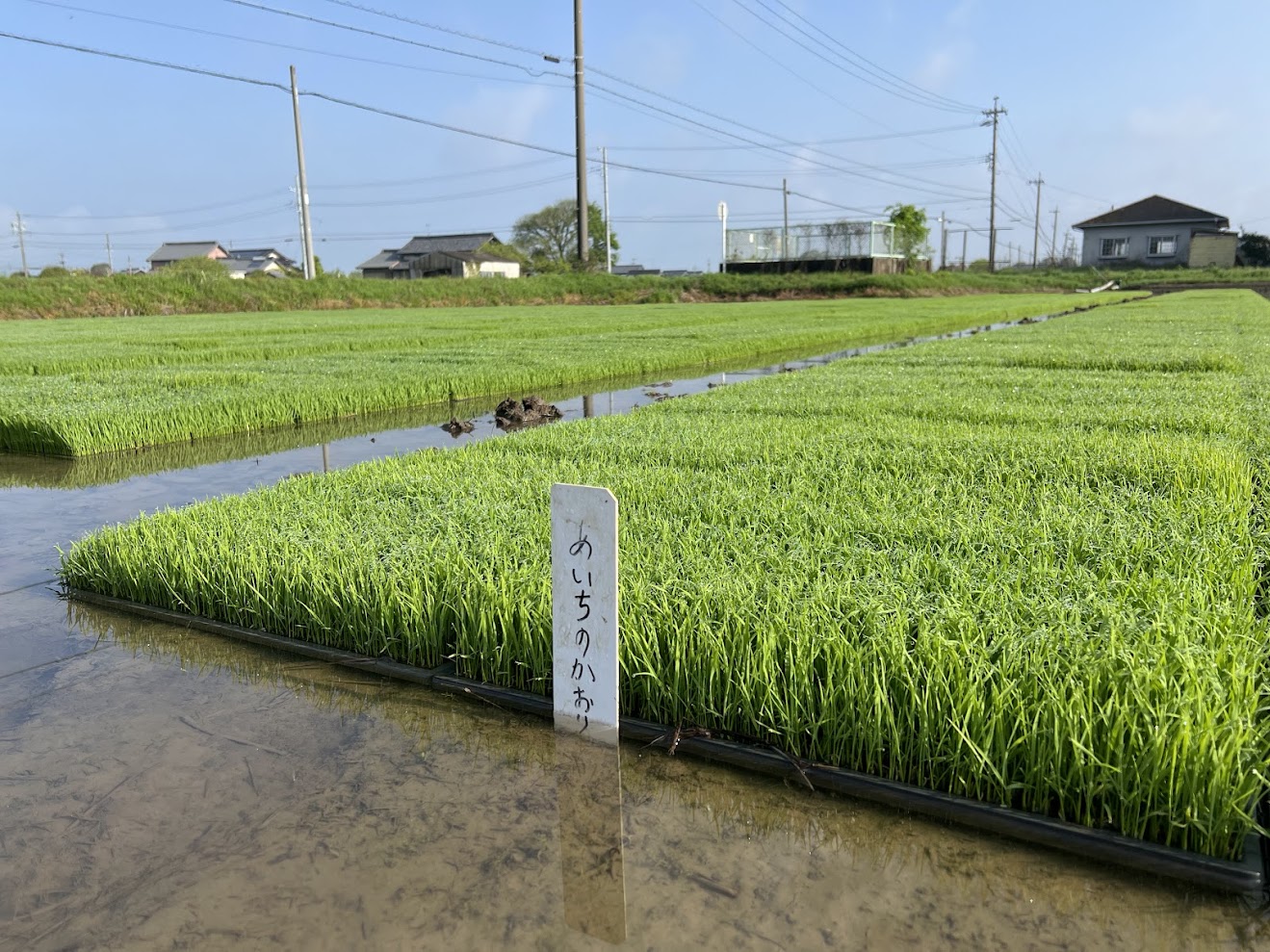 戸倉トラクターの苗場には、成長した苗が広がり、きれいな緑が広がっています。